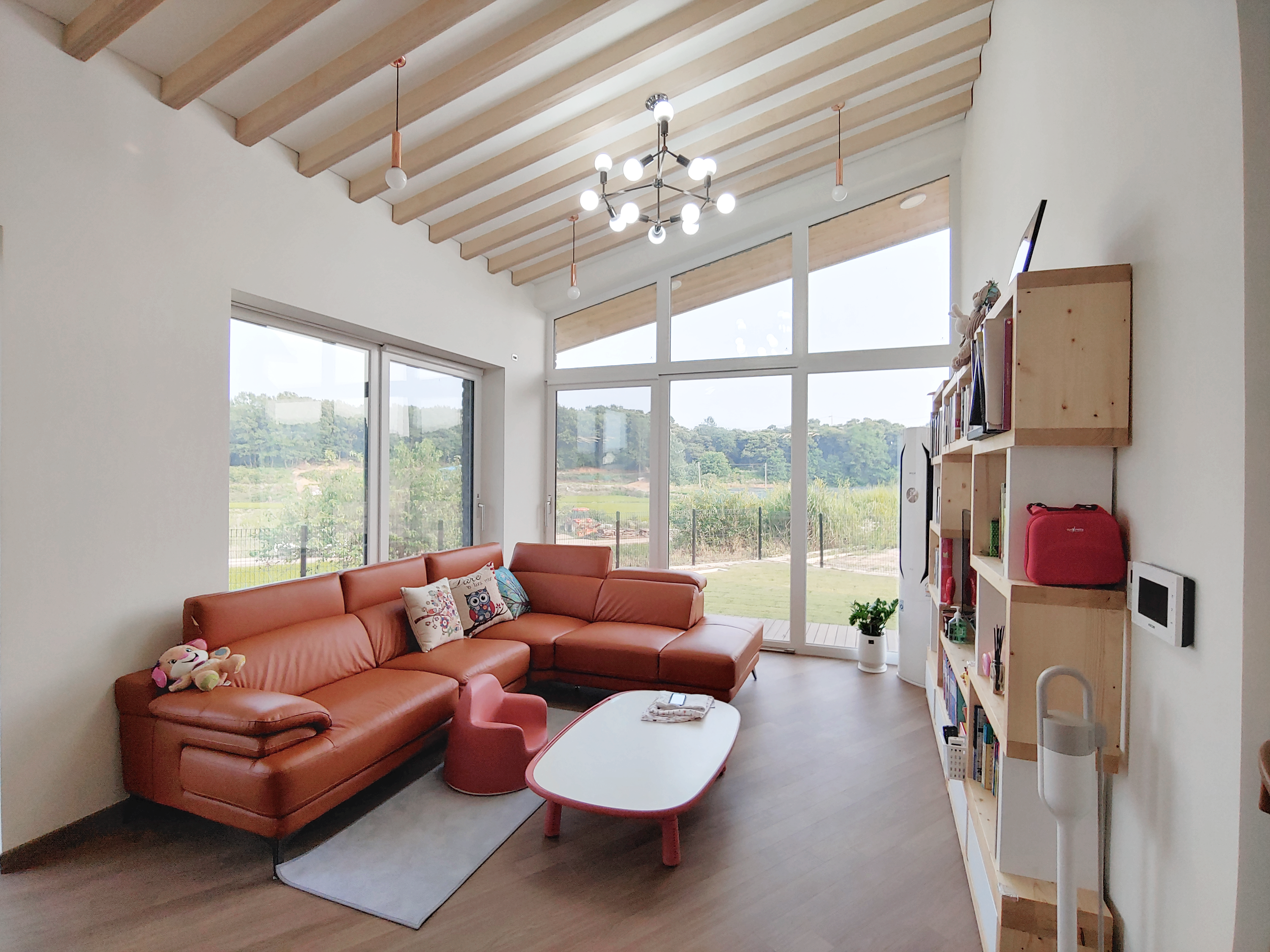 빛은 거실창을 통해 극대화 되고 집 안 어디에서든 밝은 햇살을 느낄 수 있다.