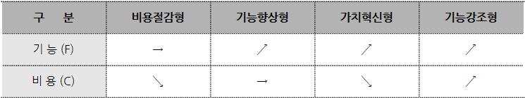 [가치(C), 기능(F), 비용(C) 관계]