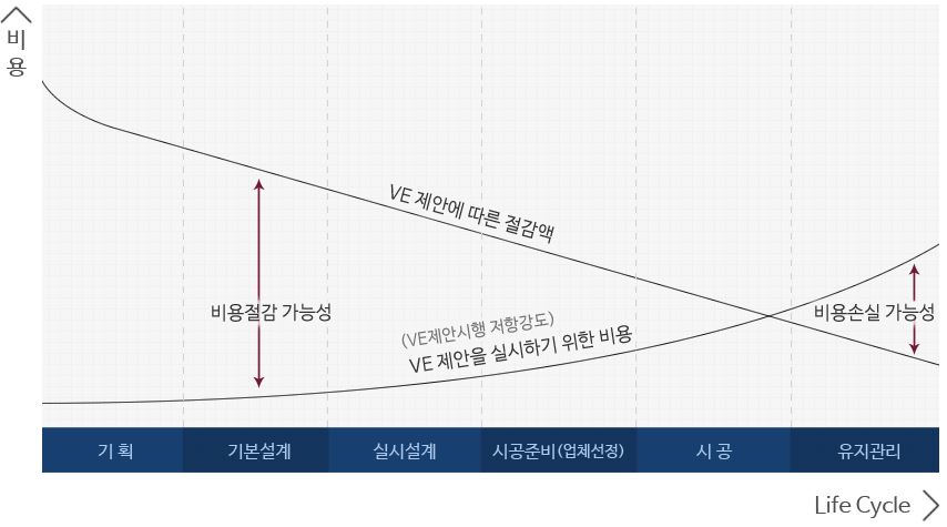 프로젝트의 원가는 설계단계에서 대부분 결정되므로 VE는 설계단계에서 실시하는 것이 효과적이다.